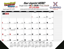 Custom printing services provided by PromotionalCalendarsSource.Com for all your full-color promotional desk pad calendars and desk blotter calendars. Custom printed desk pad calendars in 4-Color Process, are a great gift for all customers to receive and a large advertising banner for your business for year long exposure.