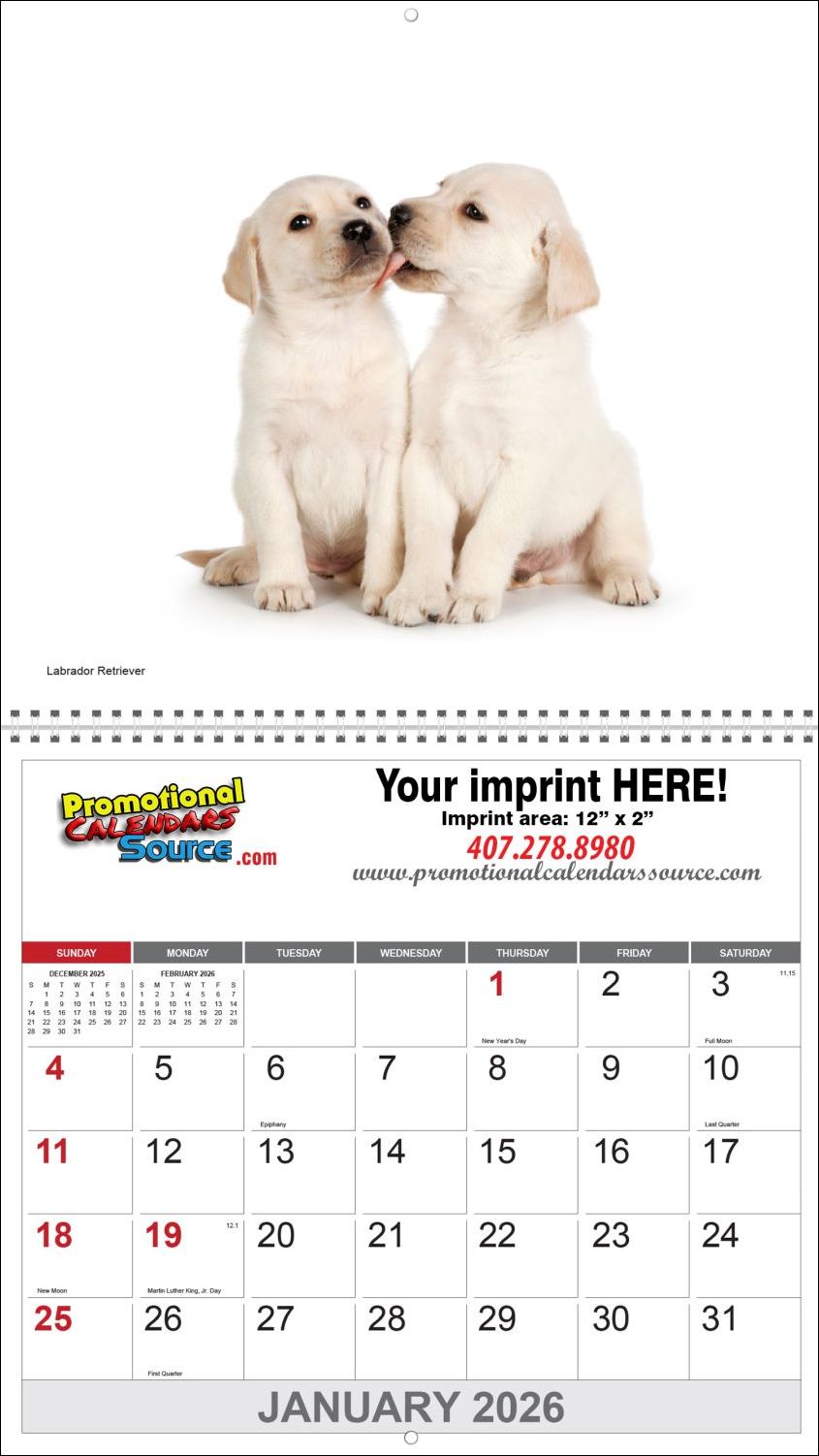Calendars, Wall, Executive, Wire-O Binding, Spiral binding, 12-month, Puppies, Shih Tzu, Pug, Bichon Frise, Cavalier King Charles Spaniel, Dalmatian, Lhasa Apso, Cocker Spaniel, Chihuahua, Boxer, Pekingese, Yorkshire Terrier, Poodle, Pets, Dogs