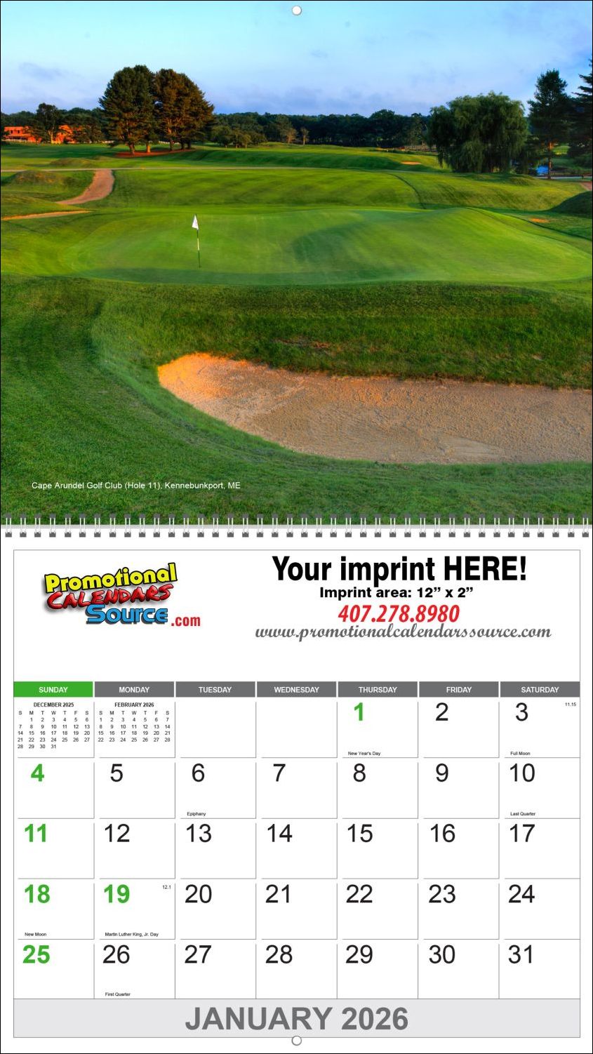 Calendars, Wall, Executive, Wire-O Binding, 12-month, Scenic, Sports, Golf, Spiral binding