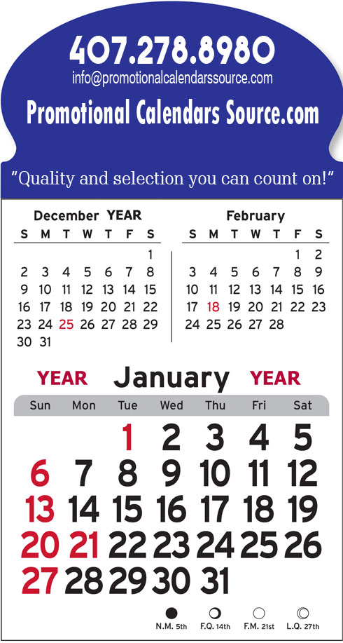 3-Month View Stick-Up Calendar Multiple Shapes Header Options