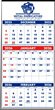 3-Months-In-View Multi-Sheets Calendar - 1-Color Imprint - Red & Blue Grids w/Tinned Top 13.25x27