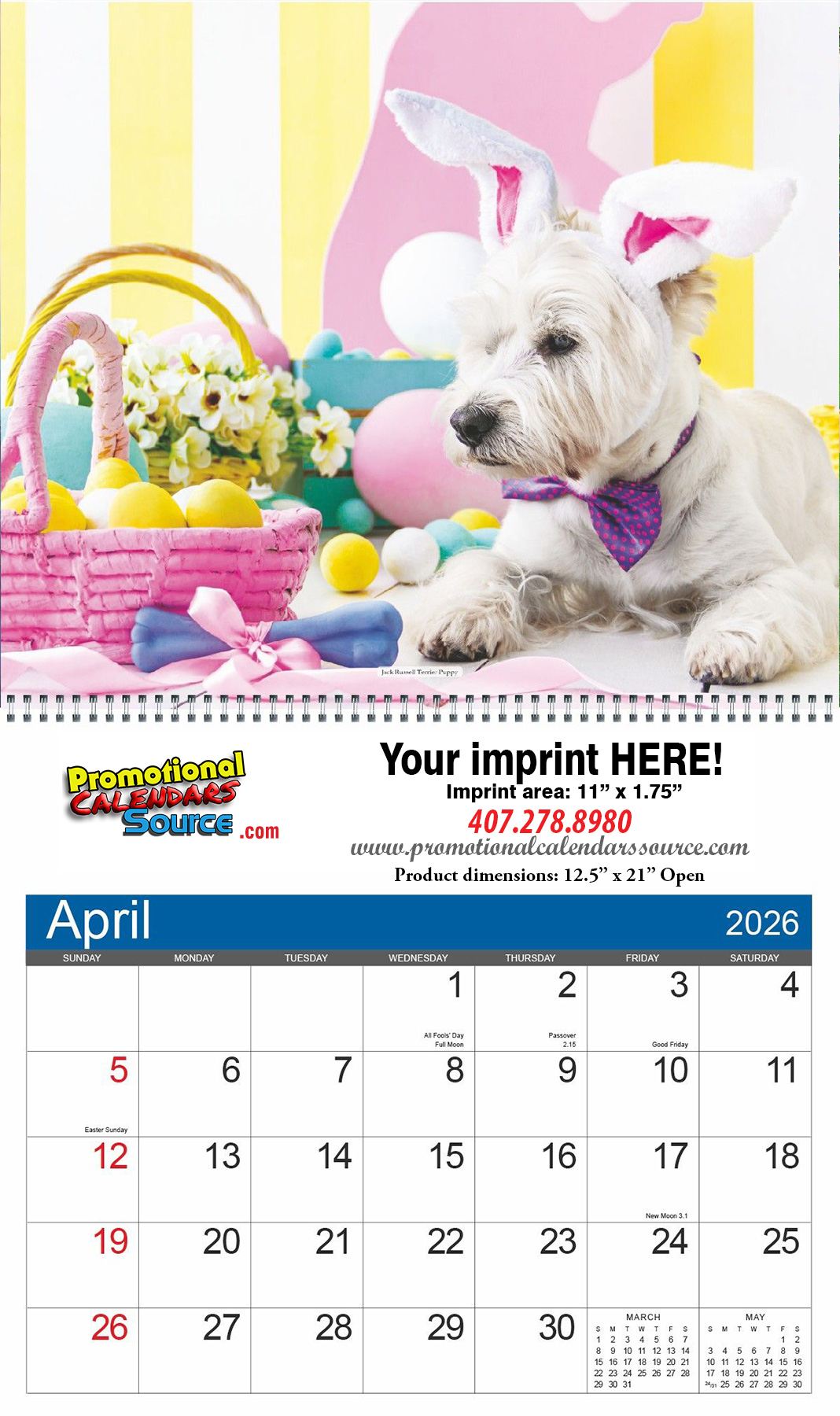 Best Friends Puppies - Animal Calendar 2027, Spiral, 12.5x21 Open and has spiral binding. Built with high quality paperstock, (Cover is 110 lb. Gloss Cover Stock with UV Coating; Pad is 75 lb. Gloss Cover Stock with UV coating), and customizable from a single color to Full-Color imprint for your advertising copy. Colorful refreshing images decorate this appointment wall calendar, a 12 month calendar of great quality. The attractive and different desing, will certainly attract attention and be admired all year long, promoting your advertising message. Custom printed with your business information and logo for a year long exposure will be a great and appreciated gift.