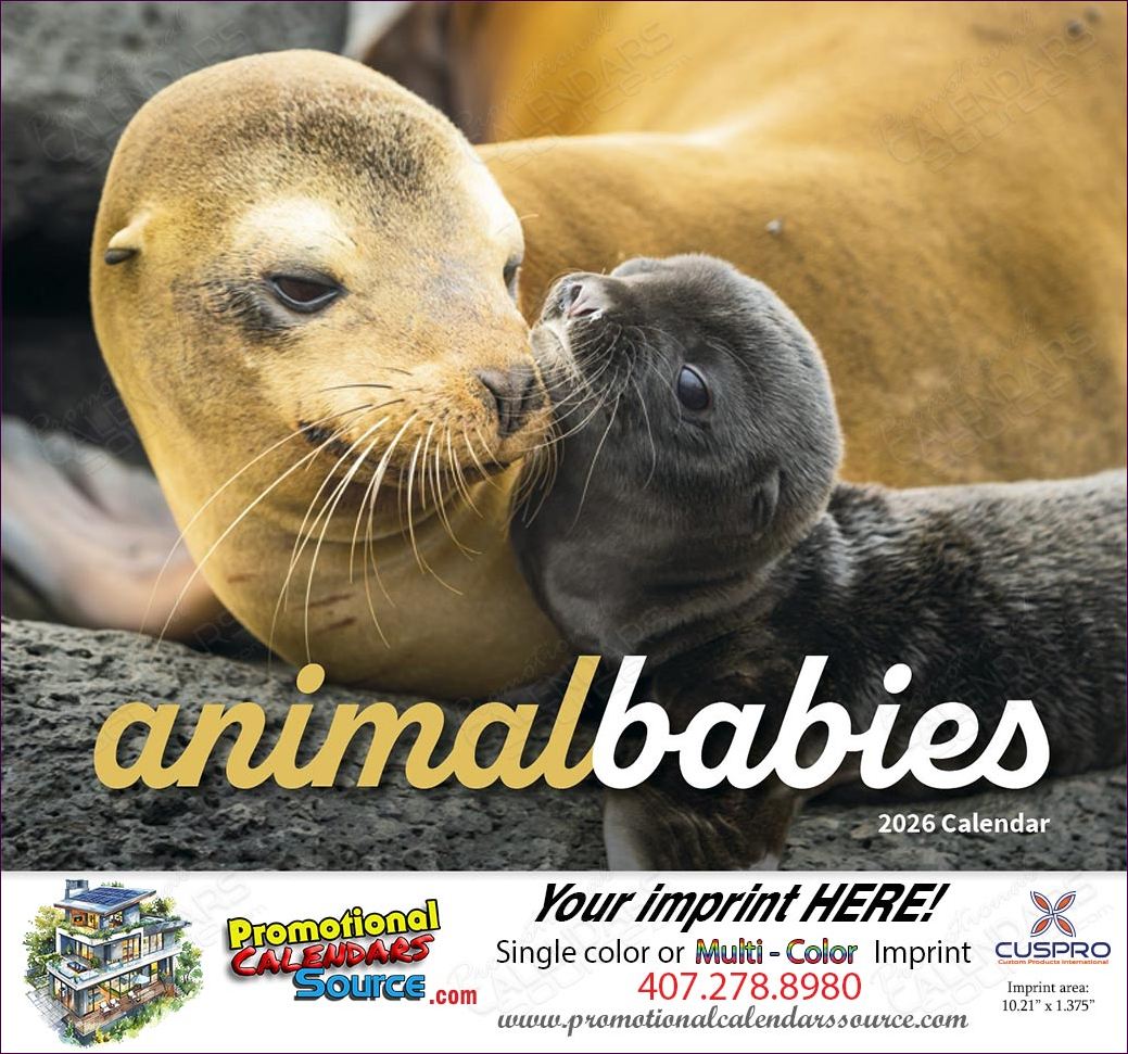 Animal Babies Wall Calendar Stapled. Who doesn’t have a soft spot in their heart for cute animal babies and their caring parents. A warm wooley lamb, cuddly cubs, a wobbly foal, and more, will brighten your days all year long. Custom printed with your information will provide year long advertising.