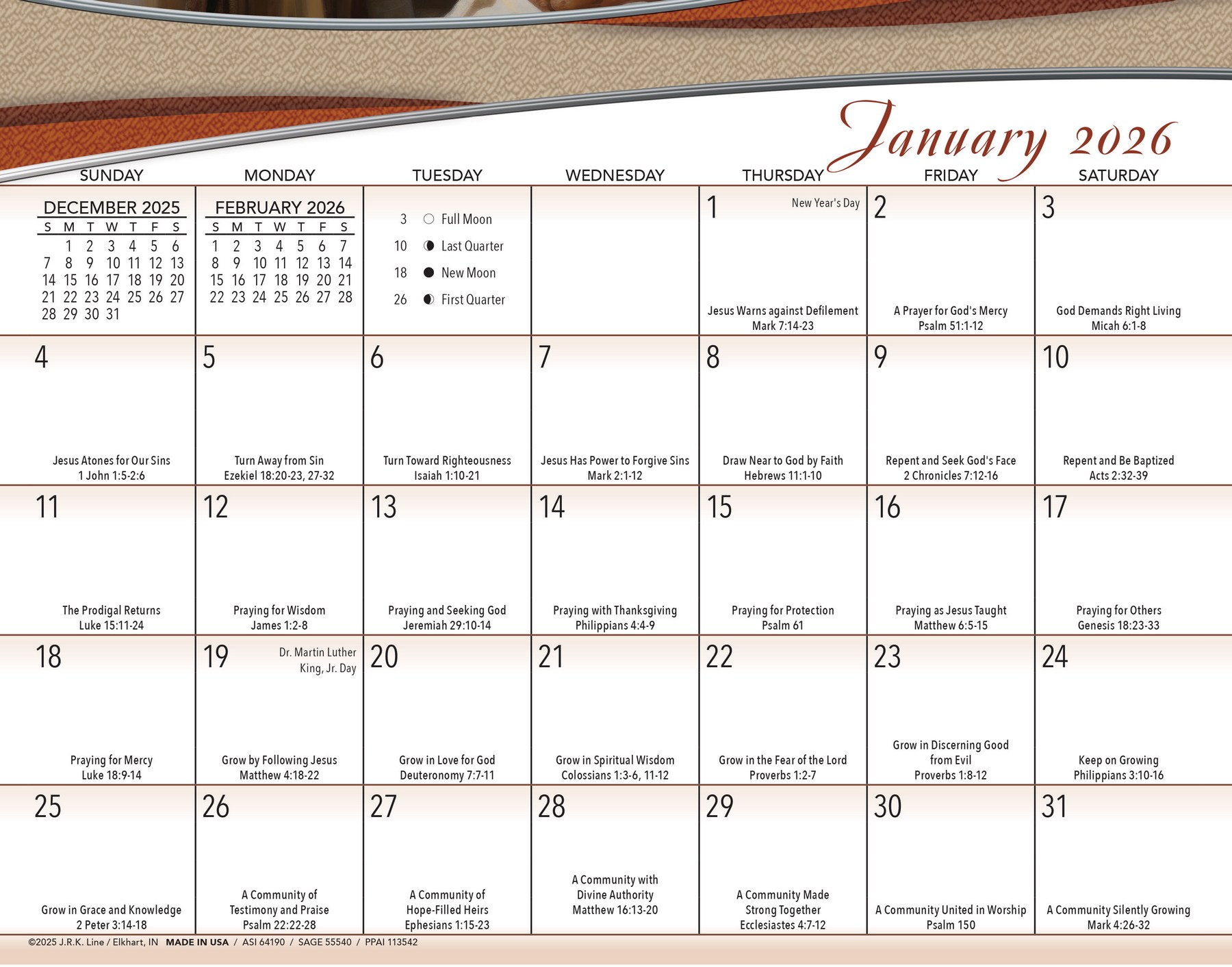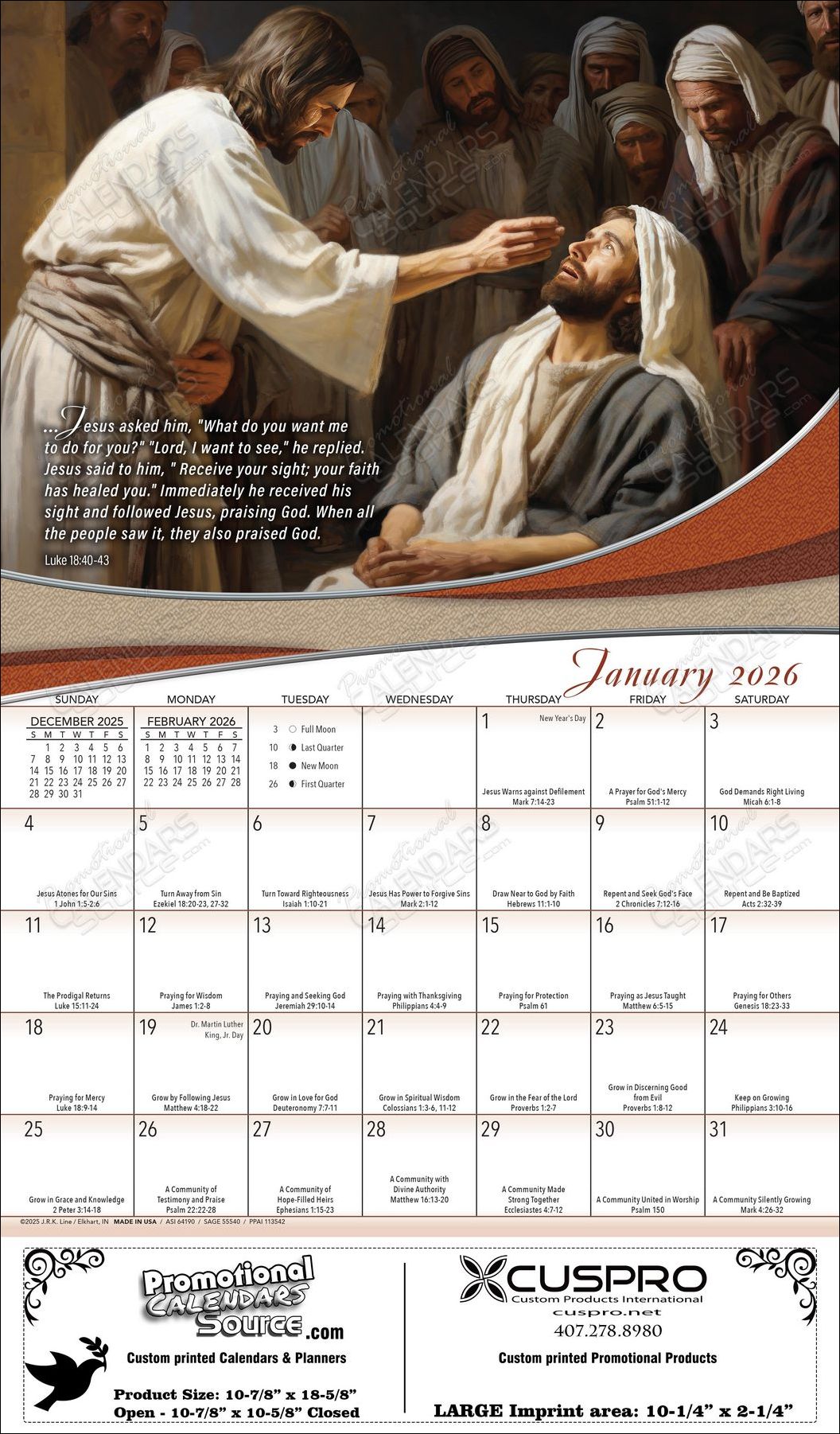 Protestan Religion calendar, Custom printed Protestant calendar, Promotional Calendar Protestant, Bible Verses Protestant Wall Calendar, Protestant Calendar with Funeral Pre-Planning Form Option, Made in USA