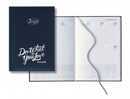 The Mid Size Weekly Planner includes 128 white pages with modern blue and gray print. Silver ribbon marker with printed year date. Perforated page corners. Extensive reference index in thru back. Size: 5 7/8 x 8 3/8 inches. Matra provides a quality high-grade polyurethane option, a cover that features a smooth surface with a matte finish. Contact us with your design needs so we can assist you finalize the details of your calendar.