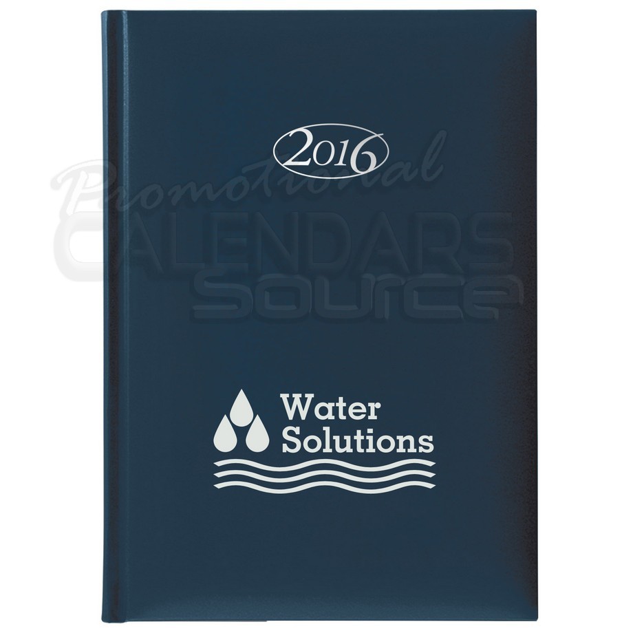 The Castelli Tabbed Mid Size Daily Includes: 416 white lined pages with time reference in modern blue and gray print. A tab separates each month where each page includes perforated corners, a month at a glance in three month sections. A silver ribbon marker with printed year date and an extensive reference section in the back that includes National and International Holidays, maps, exchange tables, and important reference lists. Matra provides a quality high-grade polyurethane option, a cover that features a smooth surface with a matte finish. Contact us with your design needs so we can assist you finalize the details of your calendar.