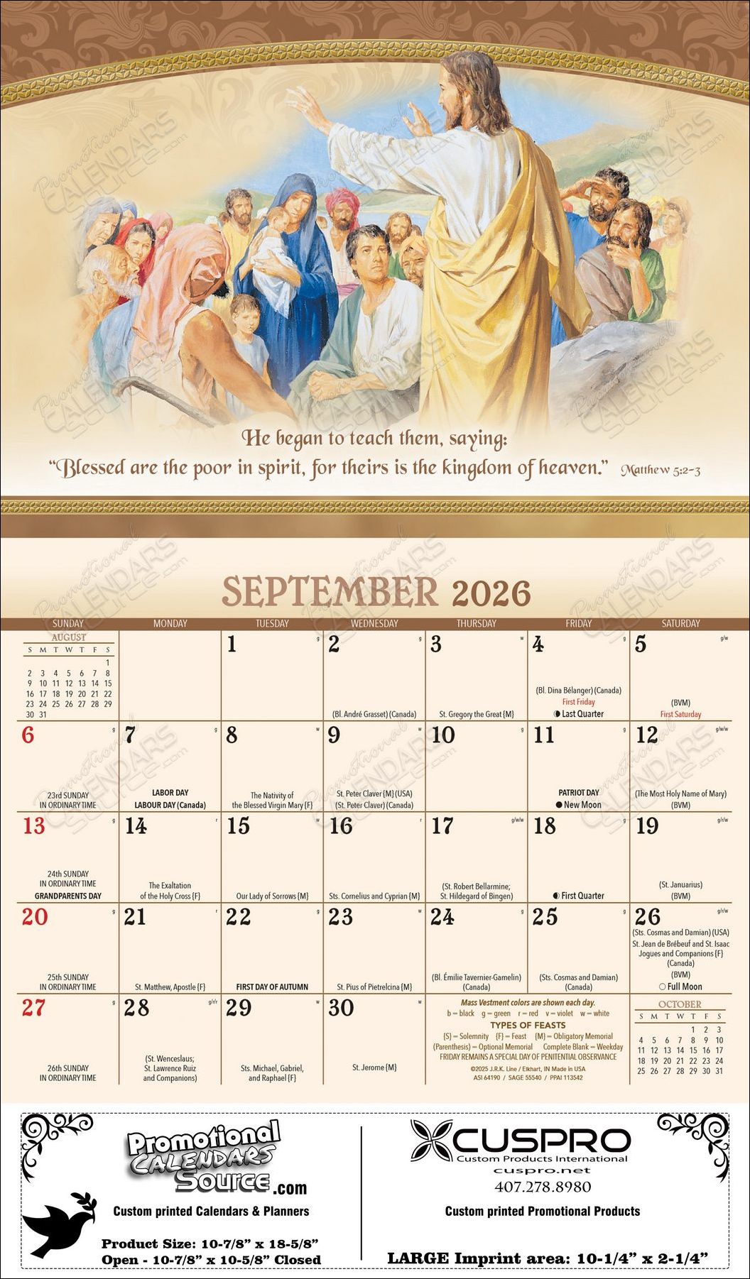 The Catholic Faith calendar features beautiful biblical artwork by the renowned artist William Luberoff. The calendar has a large pad for noting appointments. It also lists the Mass vestment colors for each day as well as all feast days and Holy Days of Obligation. Holy Days of Obbligation for 2027 with other Useful reference info and full 2027 calendar on back spread.