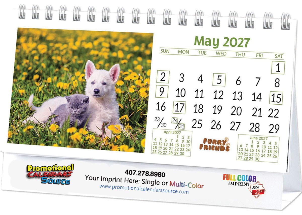 Cats & Dogs Promotional Desk Calendar . Stand-alone spiral desk calendar with monthly image on each side. 12 pages with high quality photos of Cats and Dogs.