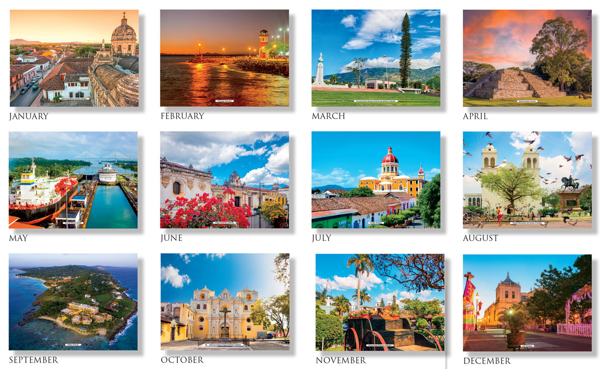 Bilingual Spanish-English Wall Calendar, scenic central america promotional calendar, promo calendar with central america images, promo calendar honduras, countries of central america promo calendar,