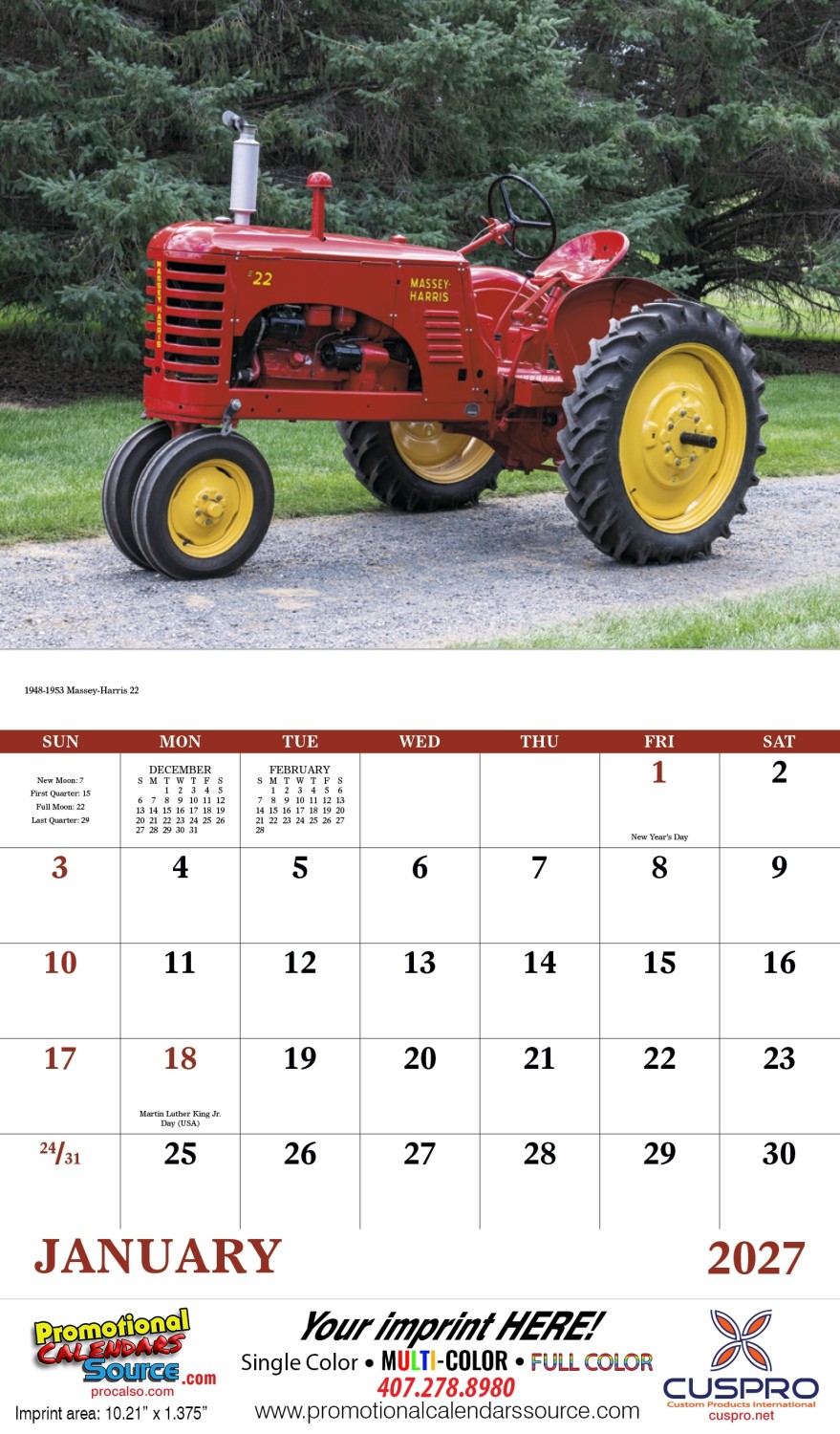 Classic Tractors promo calendar showcasing an array of restored old tractors. A classic calendar for the antiques tractors enthusiast, parts stores, agriculture realated businesses. Keep your message on course all year long!
