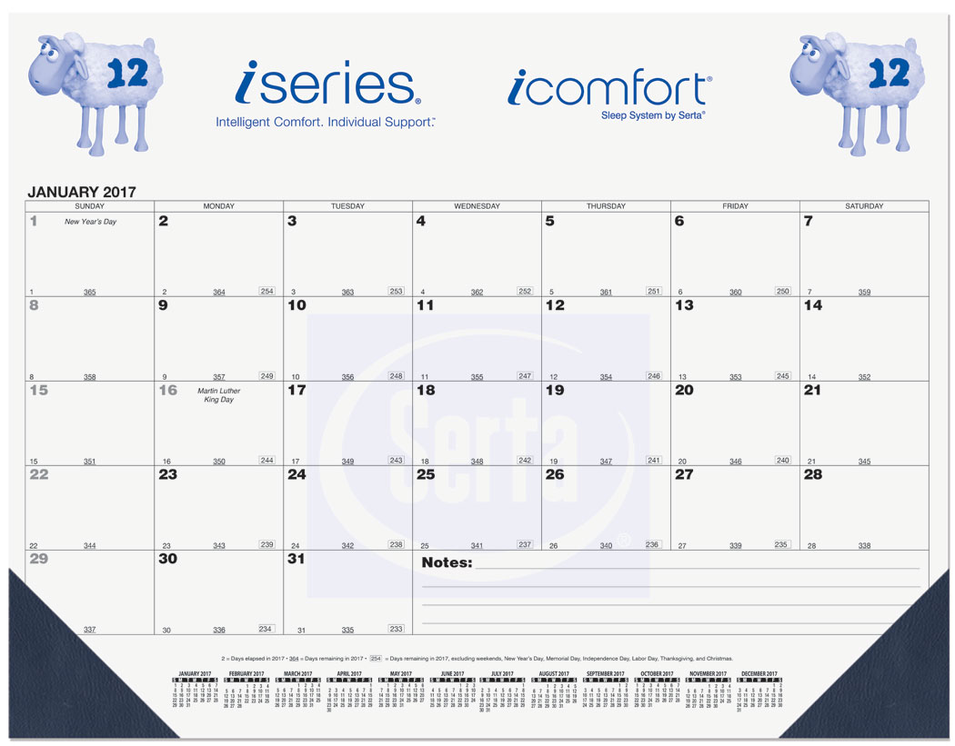 13 Month Desk Pad Calendar Black Grid with Julian and Contractor Dates. Desk Pad Calendar with Months, dates, and larger bottom reference calendar preprinted in Black on 60 lb. white offset paper. Padded at top with 13 sheets to a pad, chipboard back and two corners at bottom of pad. Large 12 month reference calendar standard at bottom of each layout with company logo and information printed in designated imprint areas in one standard color.