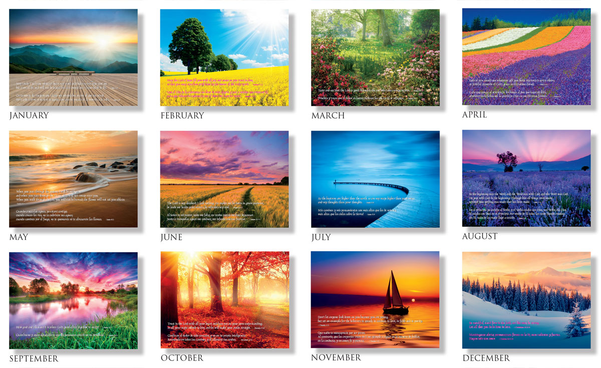 Breathtaking scenery accompanied by divine passages in Spanish and English, will uplift your soul all year long.