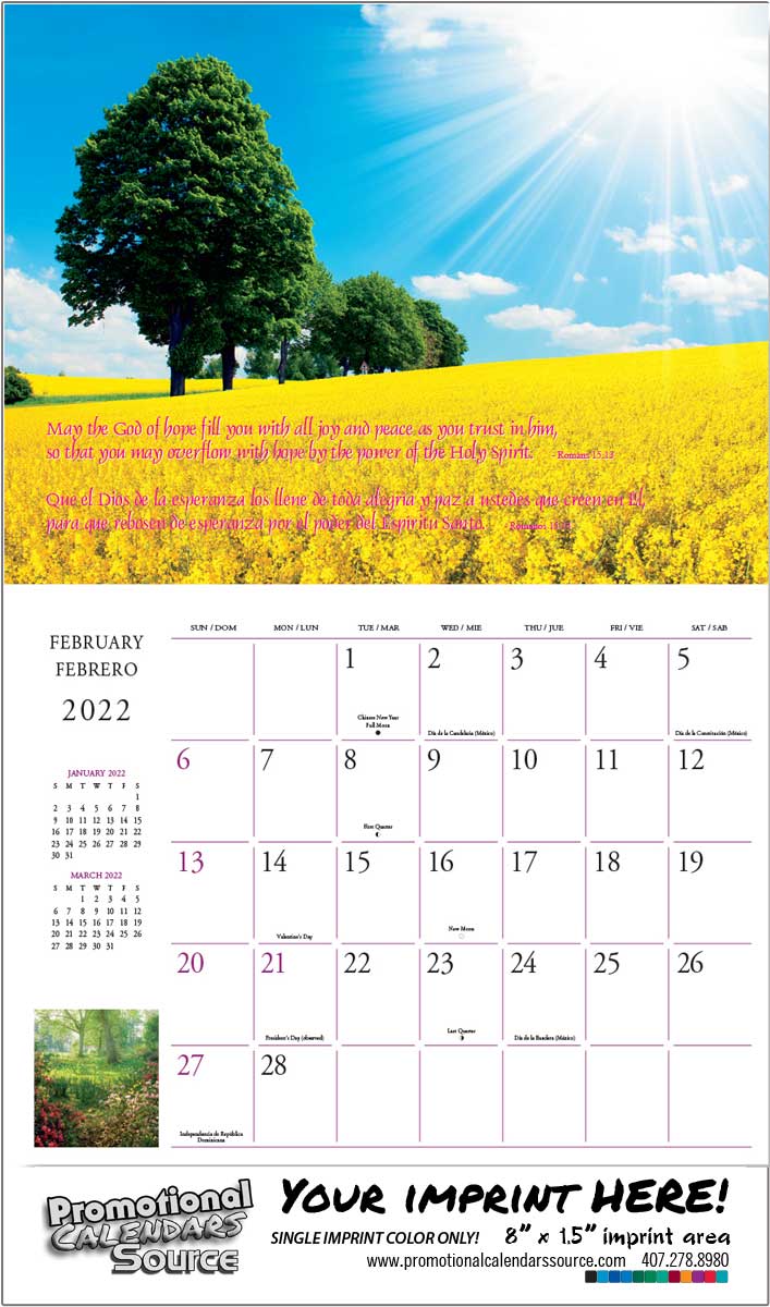 Bilingual Calendar, 12 Month Scenic Calendar, Free Setup,One Color Imprint