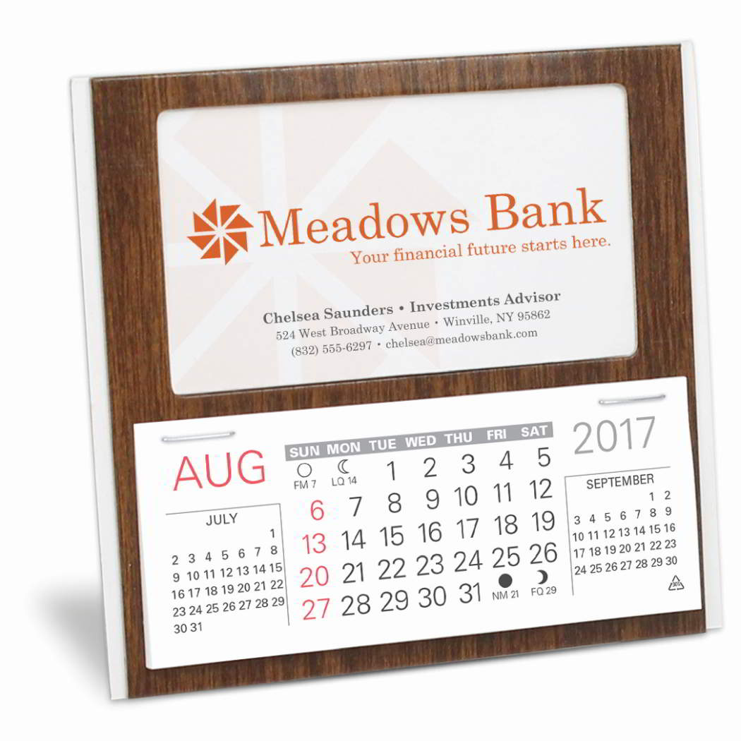 Easel Desk Calendar with business card insertion slot. Business cards not included. Just insert your business card in the calendar and you are done.