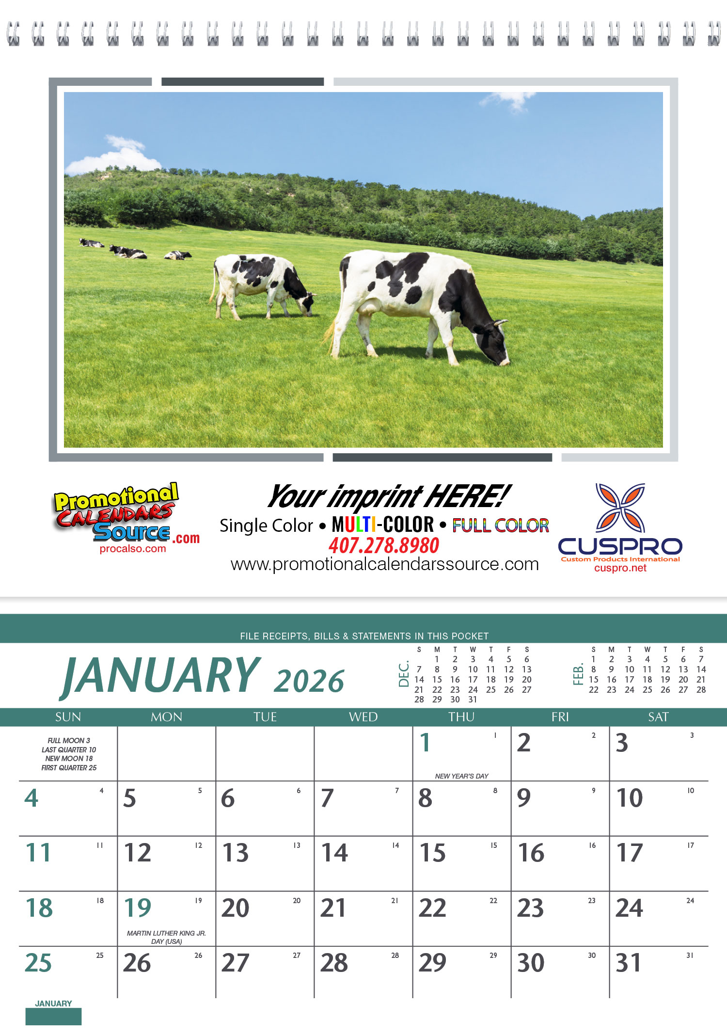This high-quality pocket calendar comes at a great price, and features information for farmers and ranchers and a convenient storage pocket each month.
