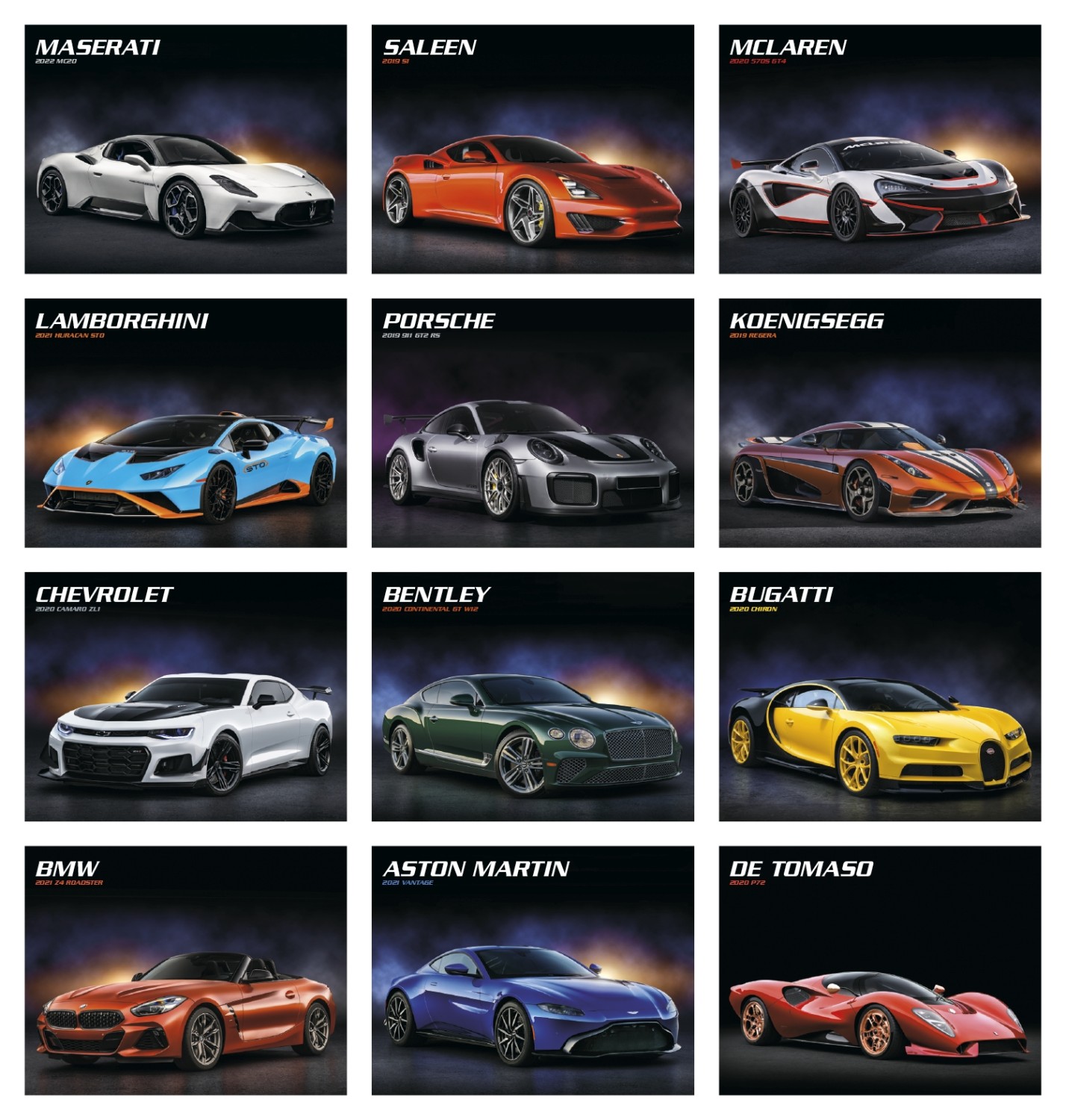 Cars Automotive Hot Sports Lamborghini Ford Bugatti Shop Full-Color 13 Months ATS Porsche McLaren 2021