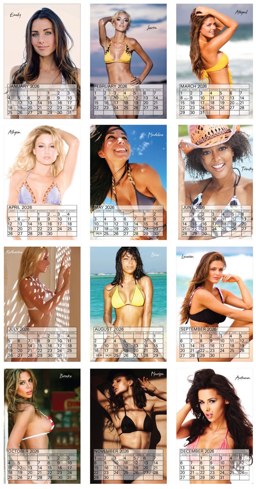 Hot Female Models 2023 Calendar, a 12 month calendar with twelve stunning female models who have nothing to hide. Calendar will appeal to male and female oriented businesses. Calendar size is 8x14 inches with ad area of 6.75x1.5 in. to be customized with your business information. A promotional calendar certainly attracting attention.