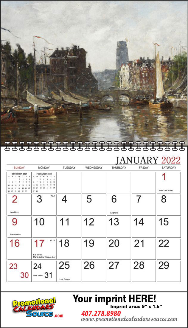A beautiful Promotional Calendar filled with imagery of Fine Artworks from artists such as Luce, Monet, Cezanne, Van Gogh, Bazille, Picasso, an more. Every month a great art image to be cherished on this promotional calendar.