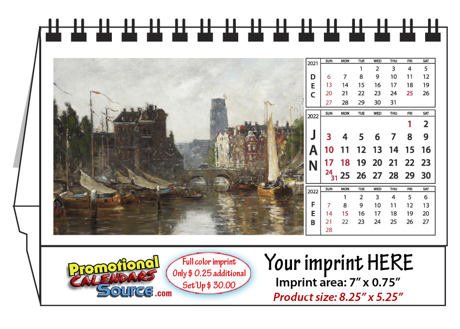 Woks of art on your desktop Promotional desk calendar for art lovers.
