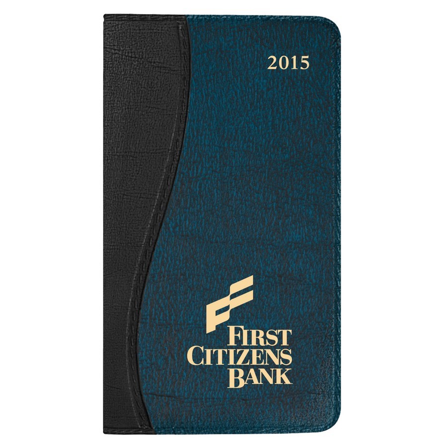 Flex wave pocket planner with work monthly insert. 3 5/8"W x 6 1/2"H. The work monthly insert has a Monday start, 14 months, 36 pages, black in on white stock, personal information, 2 year view calendar and holidays.