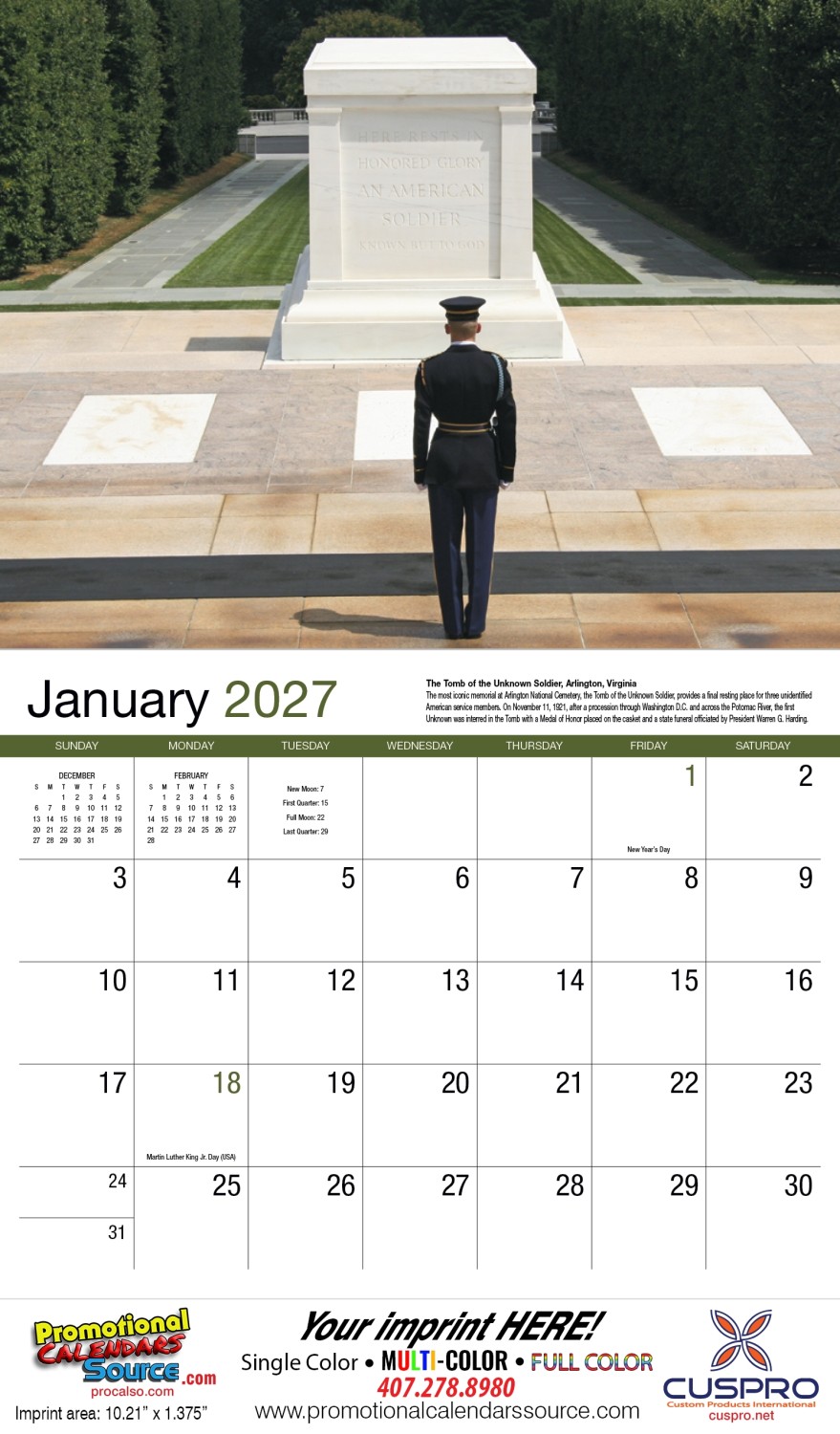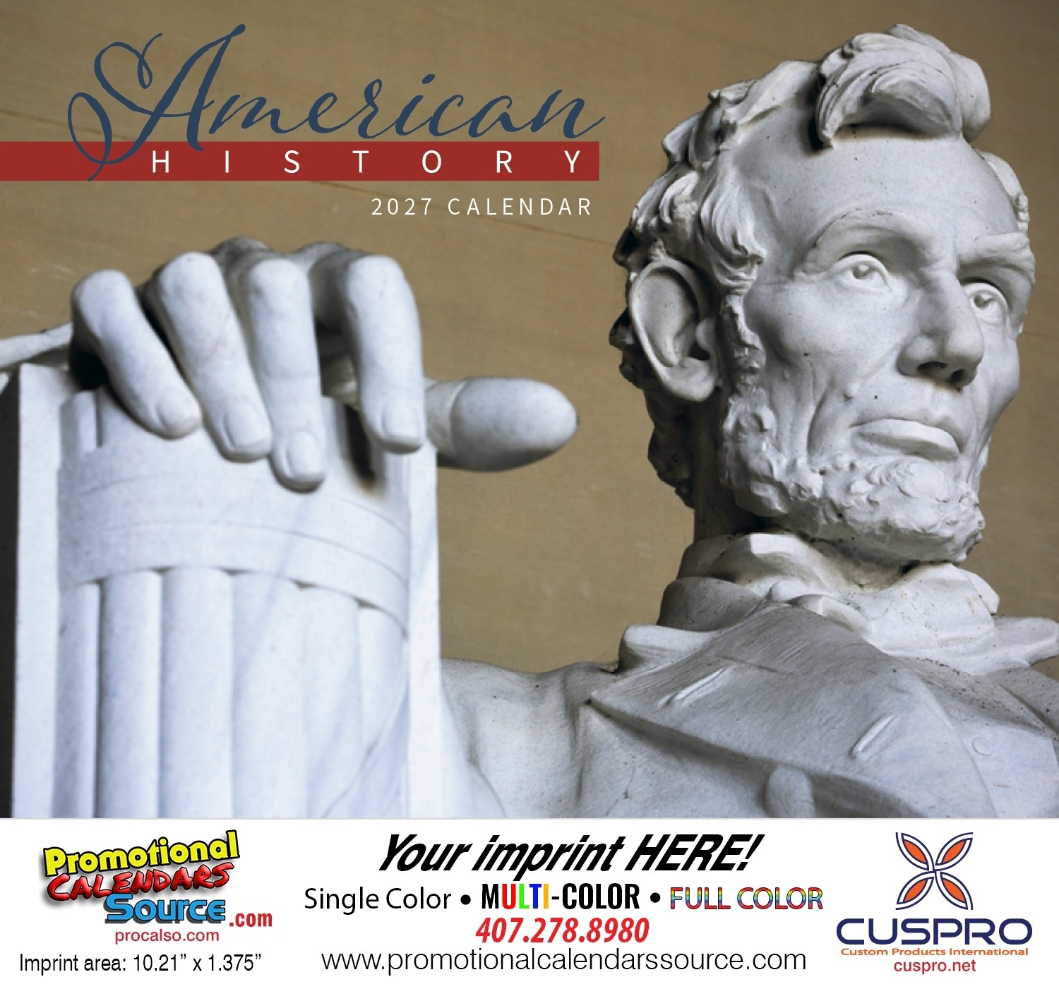 Great Symbols of American History Wall Calendar Stapled. Celebrating the rich history of our Nation. Photos of enduring symbols, historic monuments, and memorials act as a tribute to our proud American ideals of justice and freedom. Custom printed with your information will provide year long advertising.