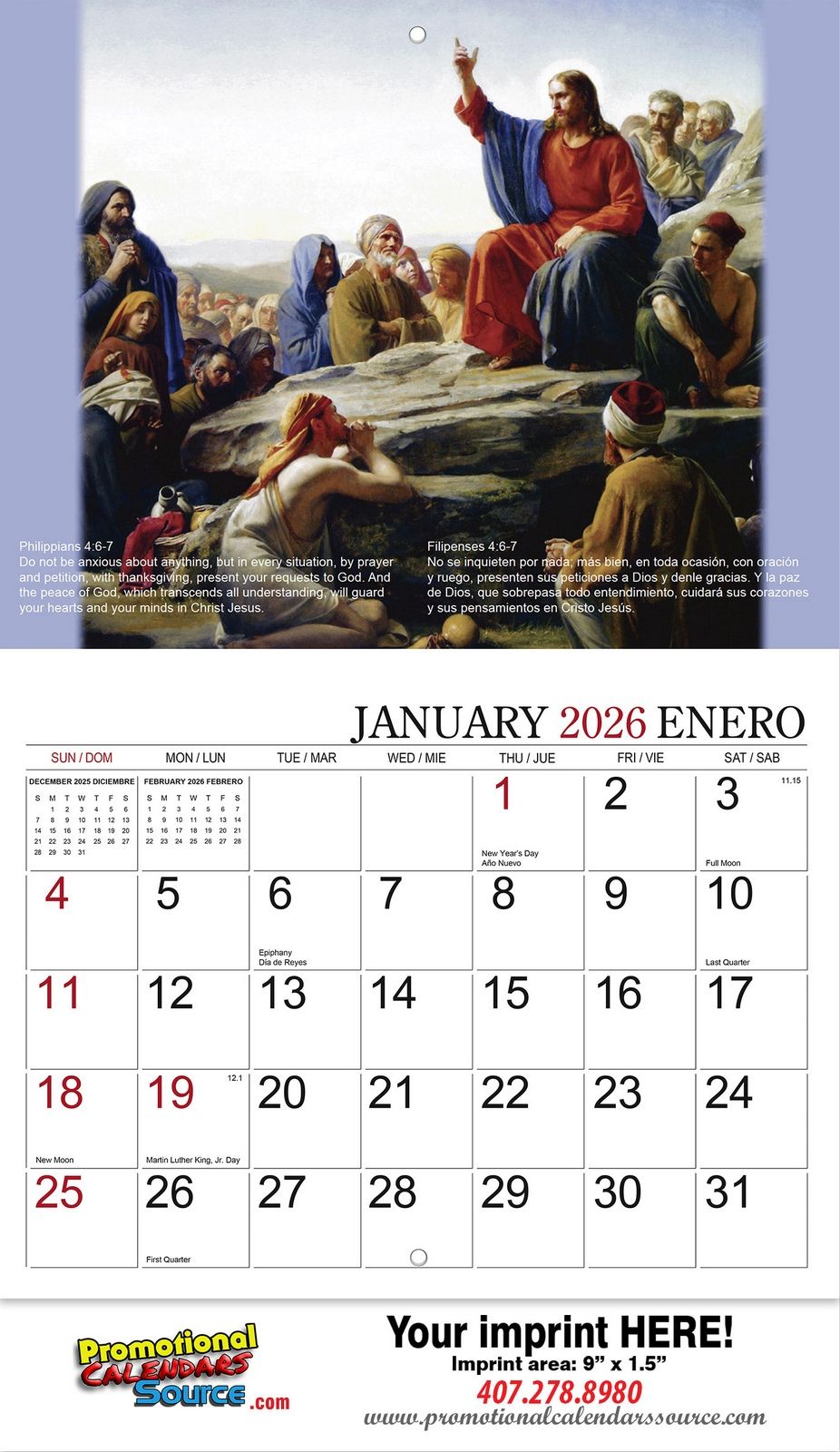 Calendars, Wall, Appointment, Drop Ad, 13-month, Religious, Christian, Bible Verse, Jesus, Latin, Bilingual, Spanish, Mexican Holiday