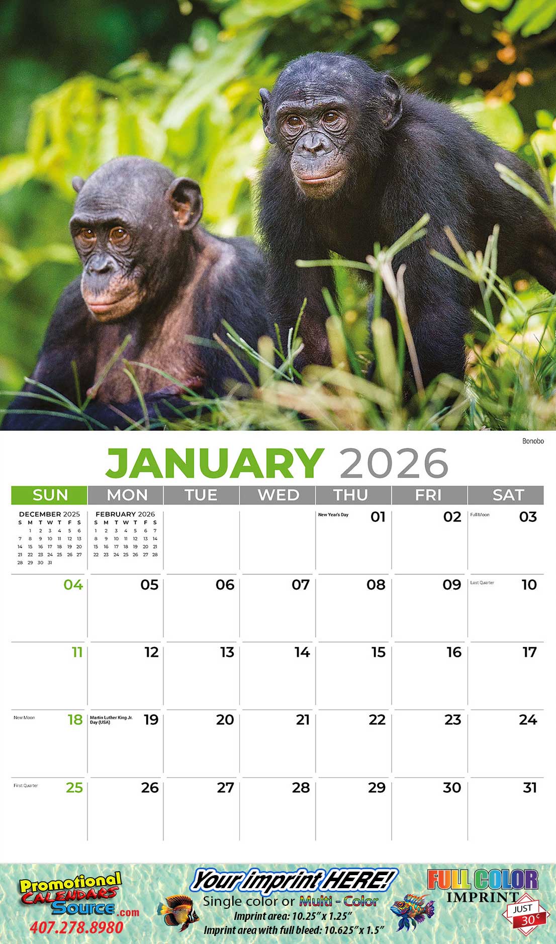 • Full-Bleed imprint option available for only $ 0.30 per calendar.