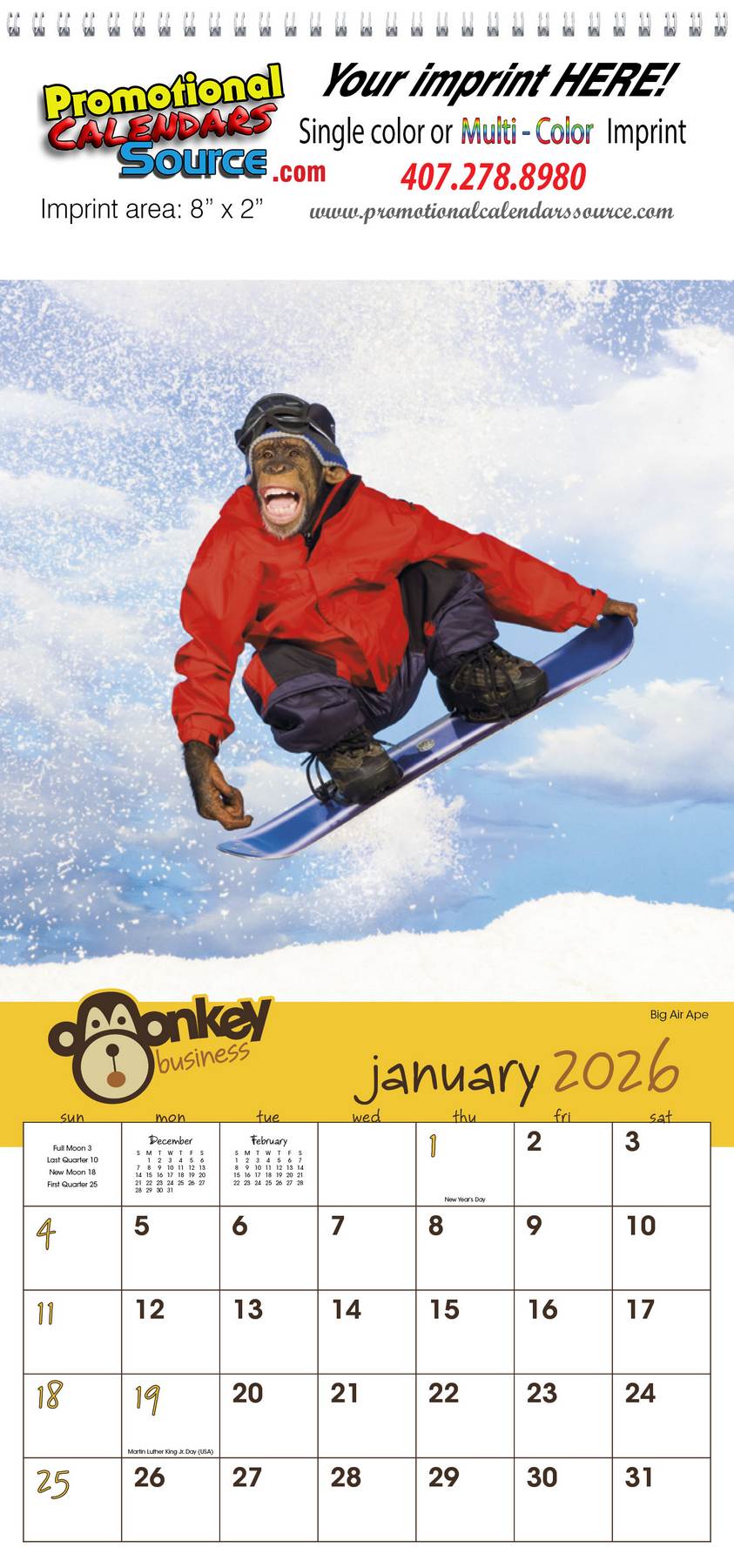 Monkey Business Promotional Calendar . For a business that likes a little humor, this is the perfect calendar. No matter who receives this calendar, they are sure to enjoy the monkey mischief shown each month.