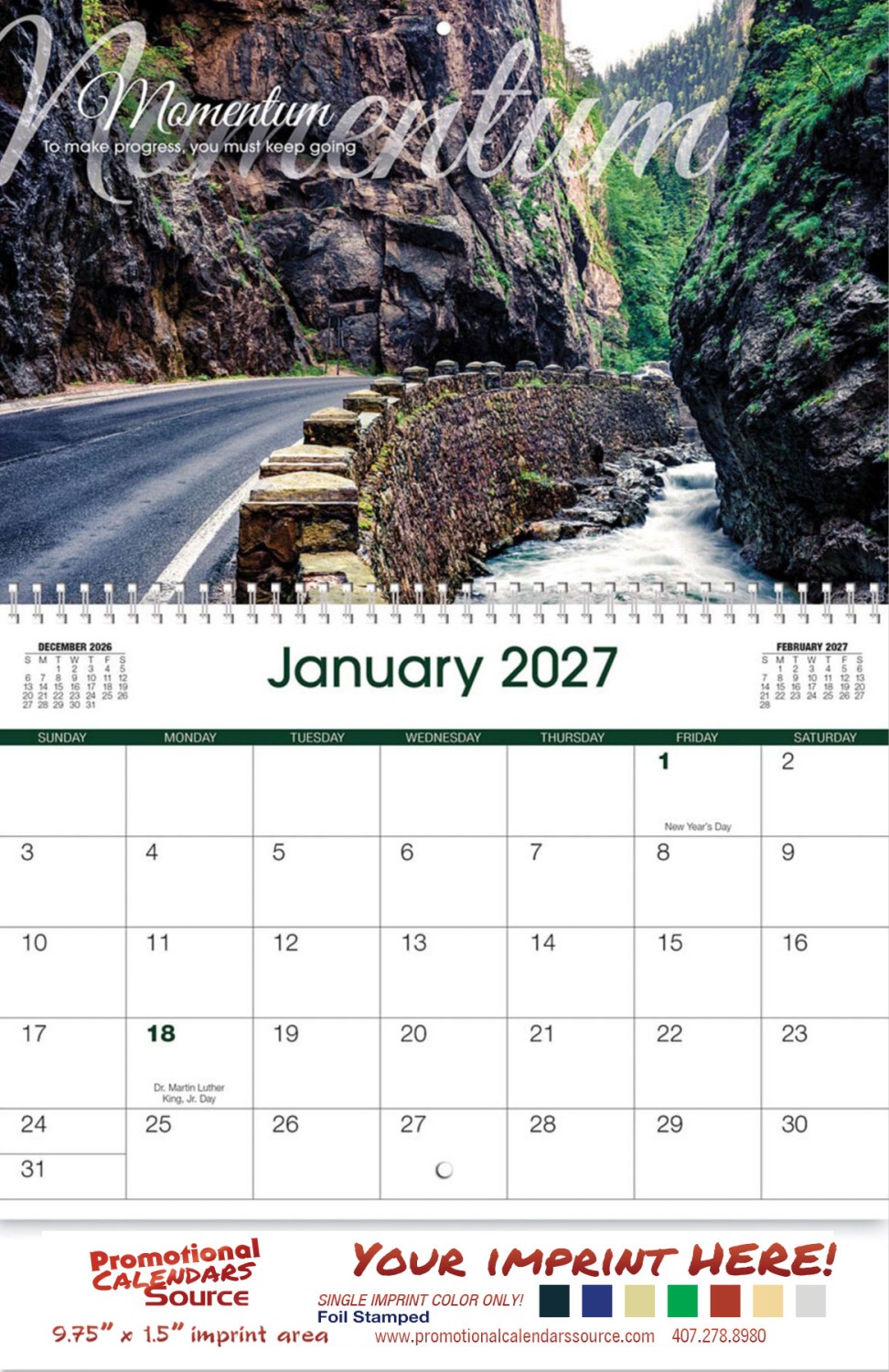 Motivations Wall Calendar - Spiral. This 13 month wall calendar with double loop spiral binding features high quality photos and Motivation verses.