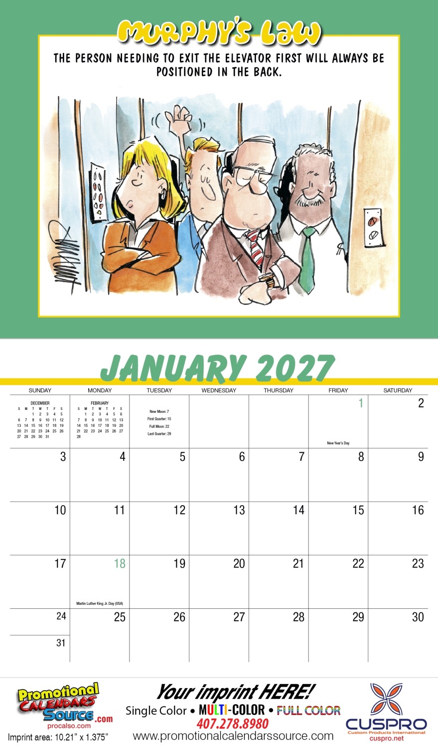 Murphy s Law Promotional Calendar - Stapled. If something can go wrong, then, well, you guessed it. Murphy?s Law, with its many humorous dilemmas, is whimsically brought to life in thirteen If something can go wrong, then, well, you guessed it. Murphy s Law, with its many humorous dilemmas, is whimsically brought to life in thirteen months of clever illustrations. Custom printed with your information will provide year long advertising.
