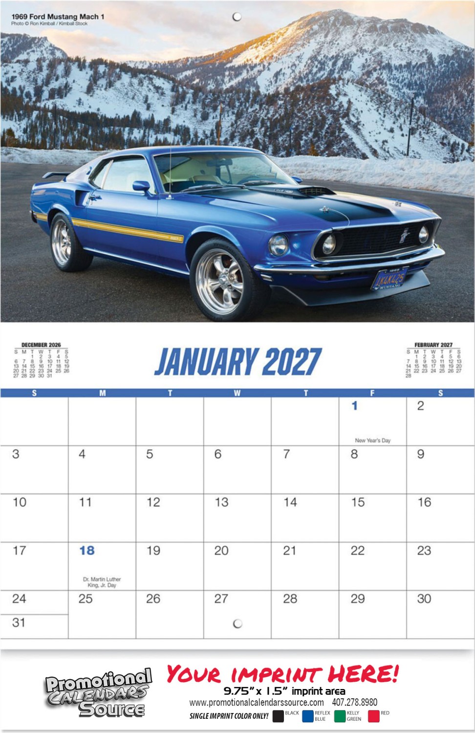 2027 Muscle Cars Wall Calendar – Classic American Cars, High-Quality Stapled Binding