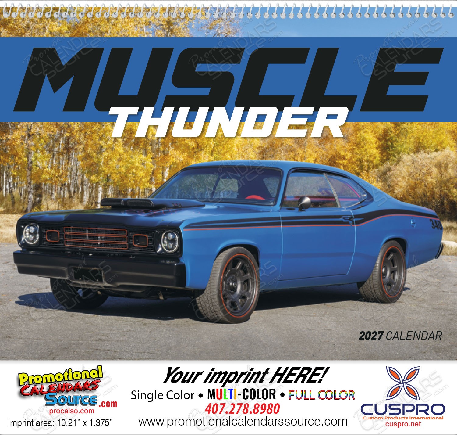 Elevate your brand visibility with Muscle Thunder Cars! Our custom-printed automotive calendars are the perfect way to promote your business year-round. These stunning, high-quality calendars feature eye-catching muscle cars, delivering your message with speed and style.