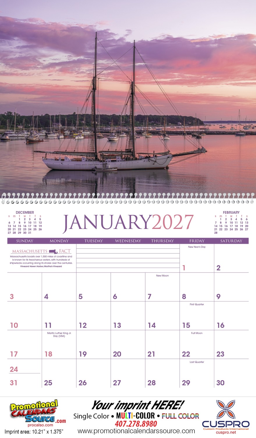 2026 Promotional Custom Printed Calendar - Add value to your calendar with an extra sheet andor an Insights backmount for no additional cost - Locations from Connecticut Maine Massachusetts New Hampshire Rhode Island and Vermont - Last page contains a short description of the region including history important industries more - Optional Sticker Sheet Insert available will be added between Dec and back cover - Top markets include financial utilities retail
