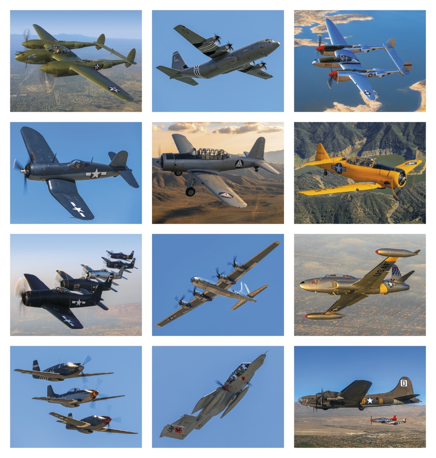 Planes promotional calendar for with 12 beautiful images of restaured from WW2 and more. These classic planes take flight every month of the year to advertise your business and services. Spiral binding.