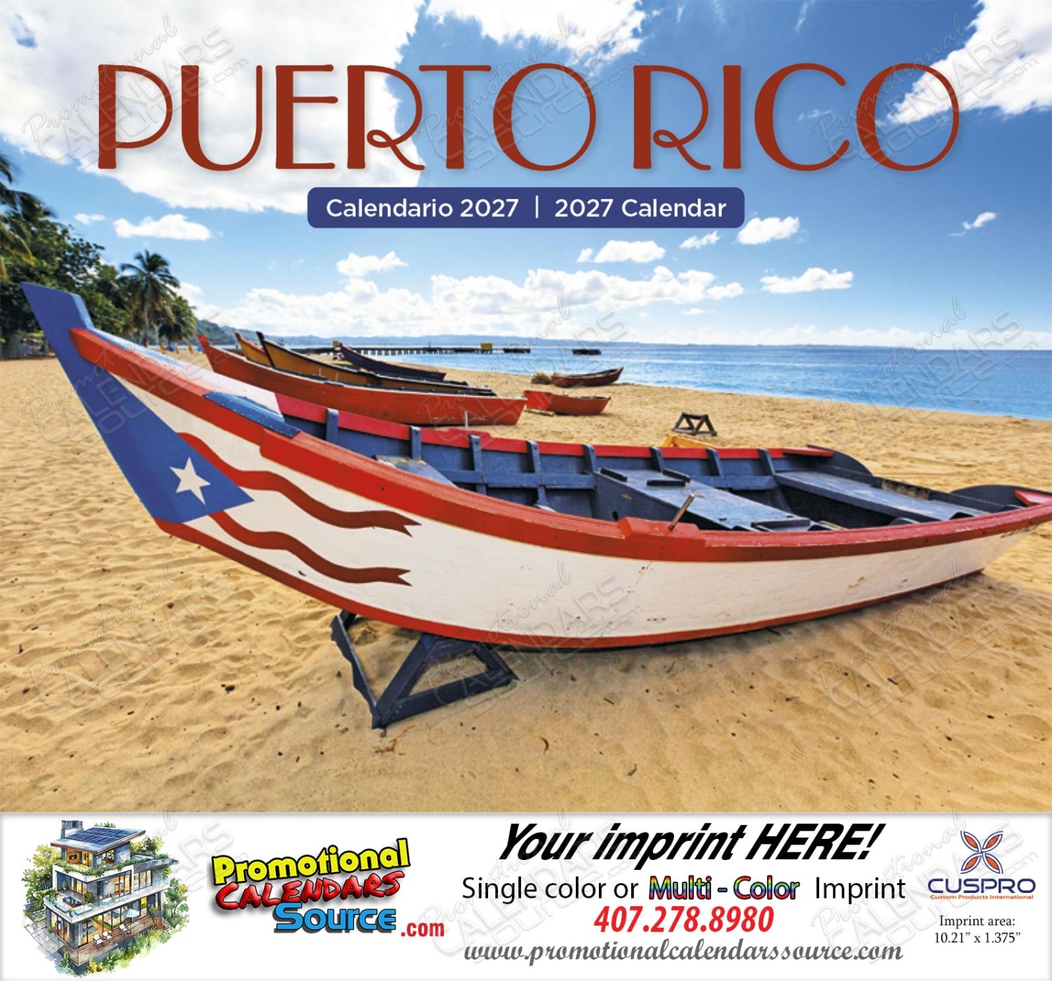 Puerto Rico Promotional Calendar Stapled. The beautiful scenic images of landmarks and landscapes from Puerto Rico. History, beauty and tradition. Great beaches and lifestyle alongside your advertising message. 11x19in calendar the perfect billboard for your business.