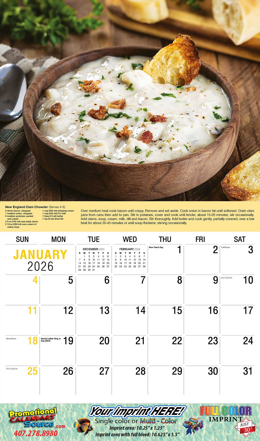 Cooking Recipes Promotional Calendar Stapled - filled with beautiful imagery that will be admired allyear round side by side with your advertising message.
