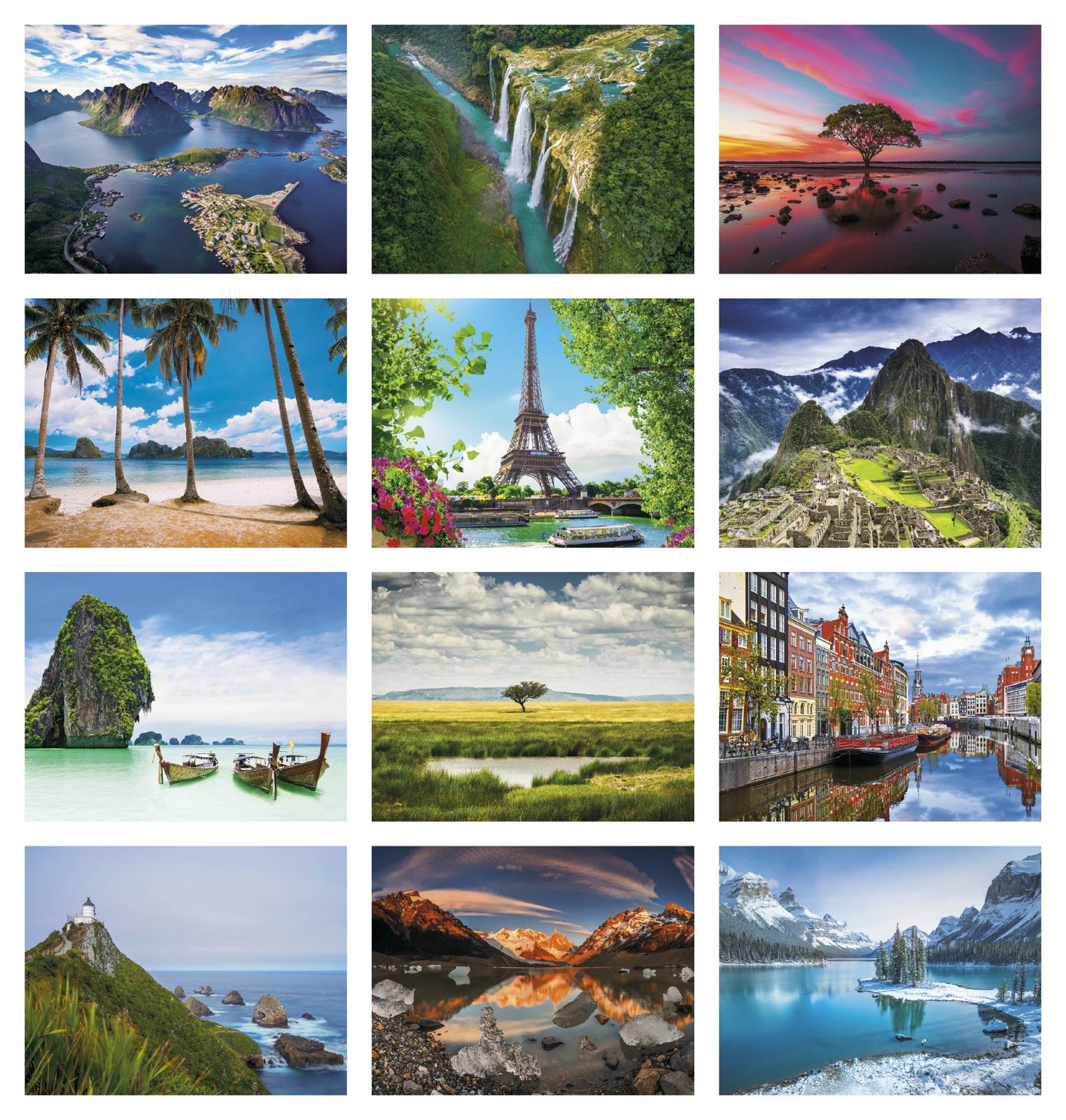 Glorious Getaways Window Calendar, Scenic Calendars, Travel Themes, Made in USA, Scenic World, Trip, Europe, Asia, Athens, Rome, 2022 calendar