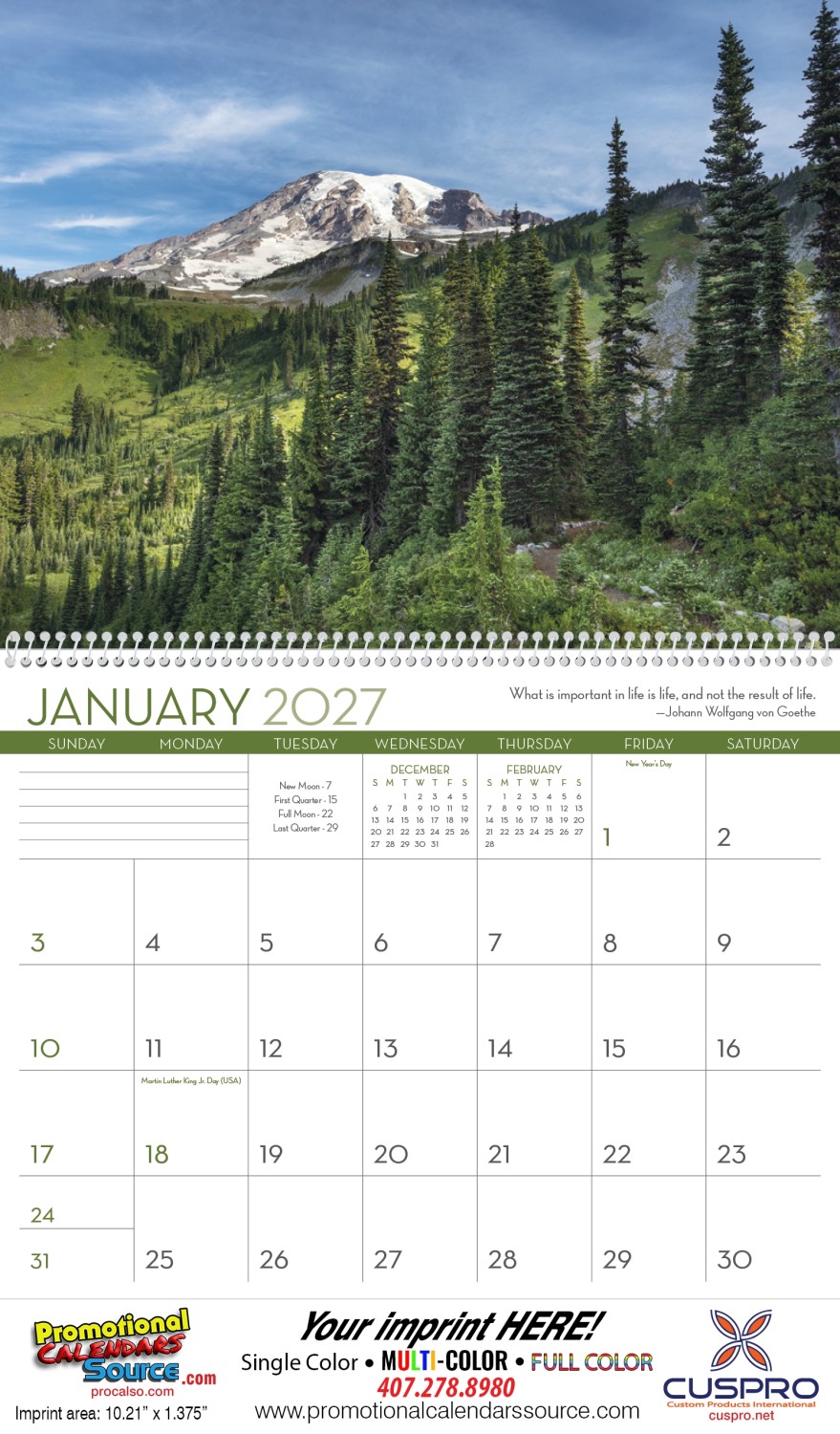 2026 Promotional Custom Printed Calendar - Add value to your calendar with an extra sheet and/or an Insights backmount for no additional cost - Optional Sticker Sheet Insert available; will be added between Dec and back cover - Top markets include: health care, financial, retail