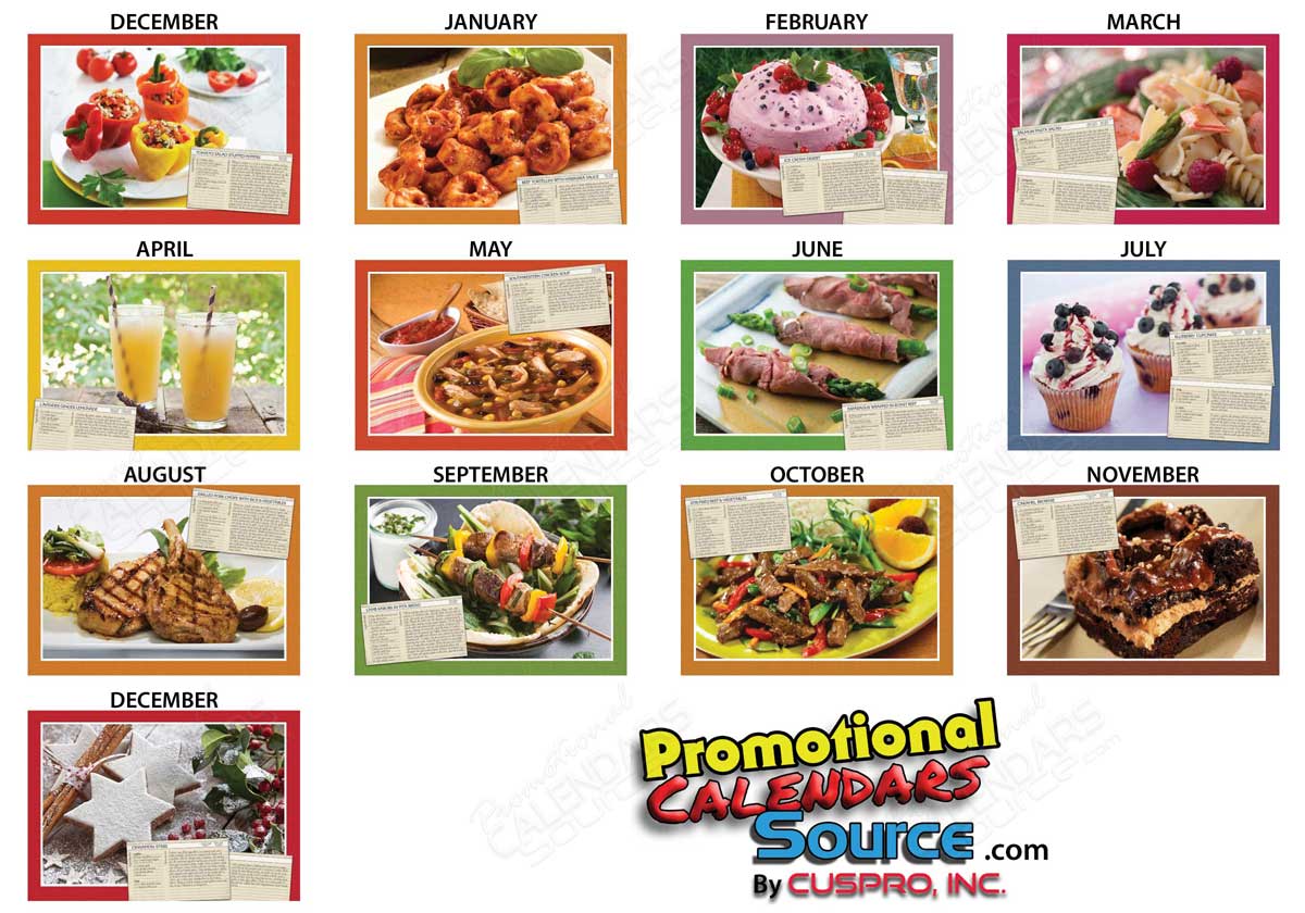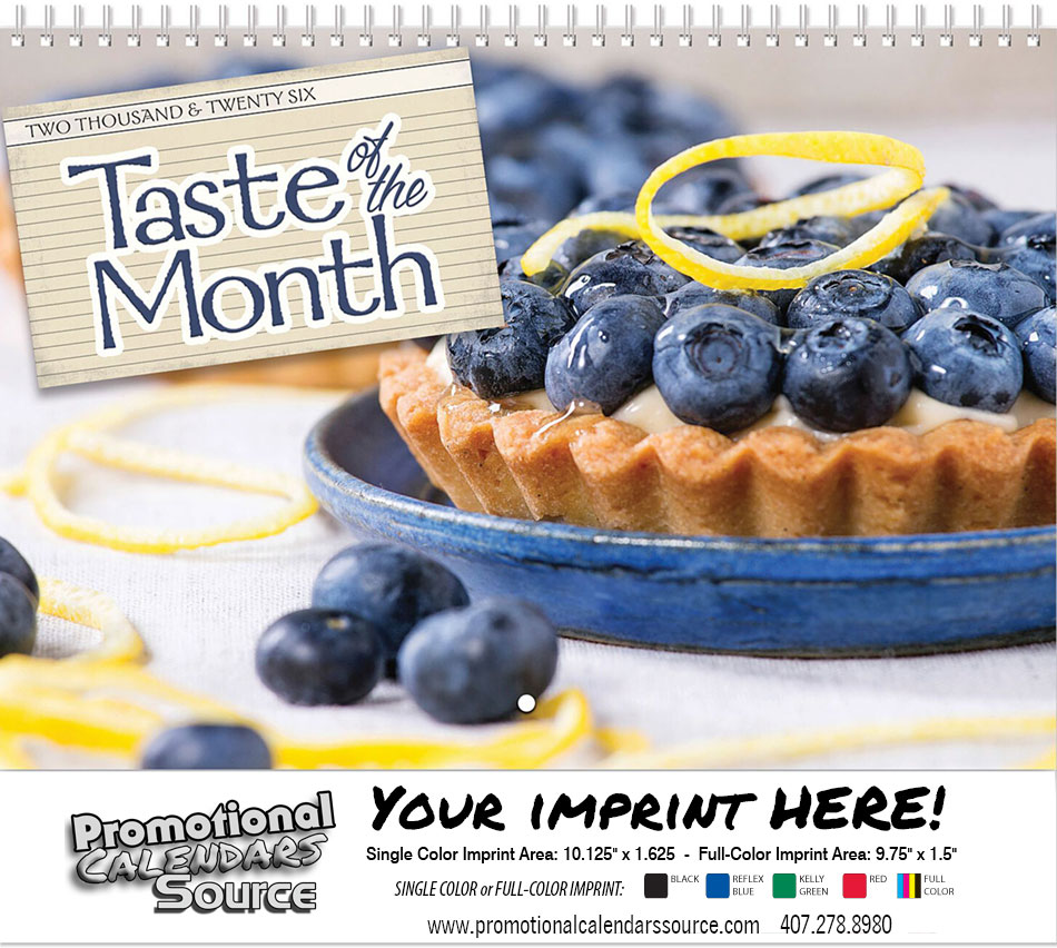 Taste of the Month Wall Calendar Spiral. Taste of the Month Wall Calendar Spiral. 13 month wall calendar with double loop spiral binding has high quality photos of "Taste of the Month" and features recipe of the month complete with step by step instructions. Contact us with your design needs so we can assist you finalize the details of your calendar.