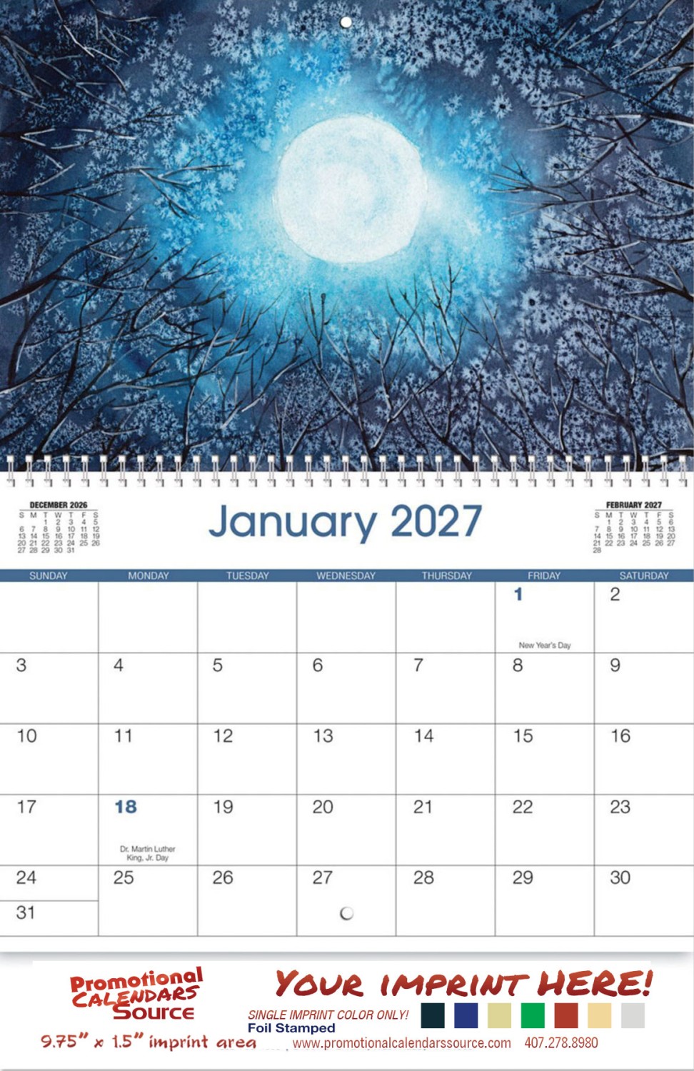 Whater Colors Promotional Wall Calendar, Custom Printed Wall Calendar, 2023 Promo Calendar