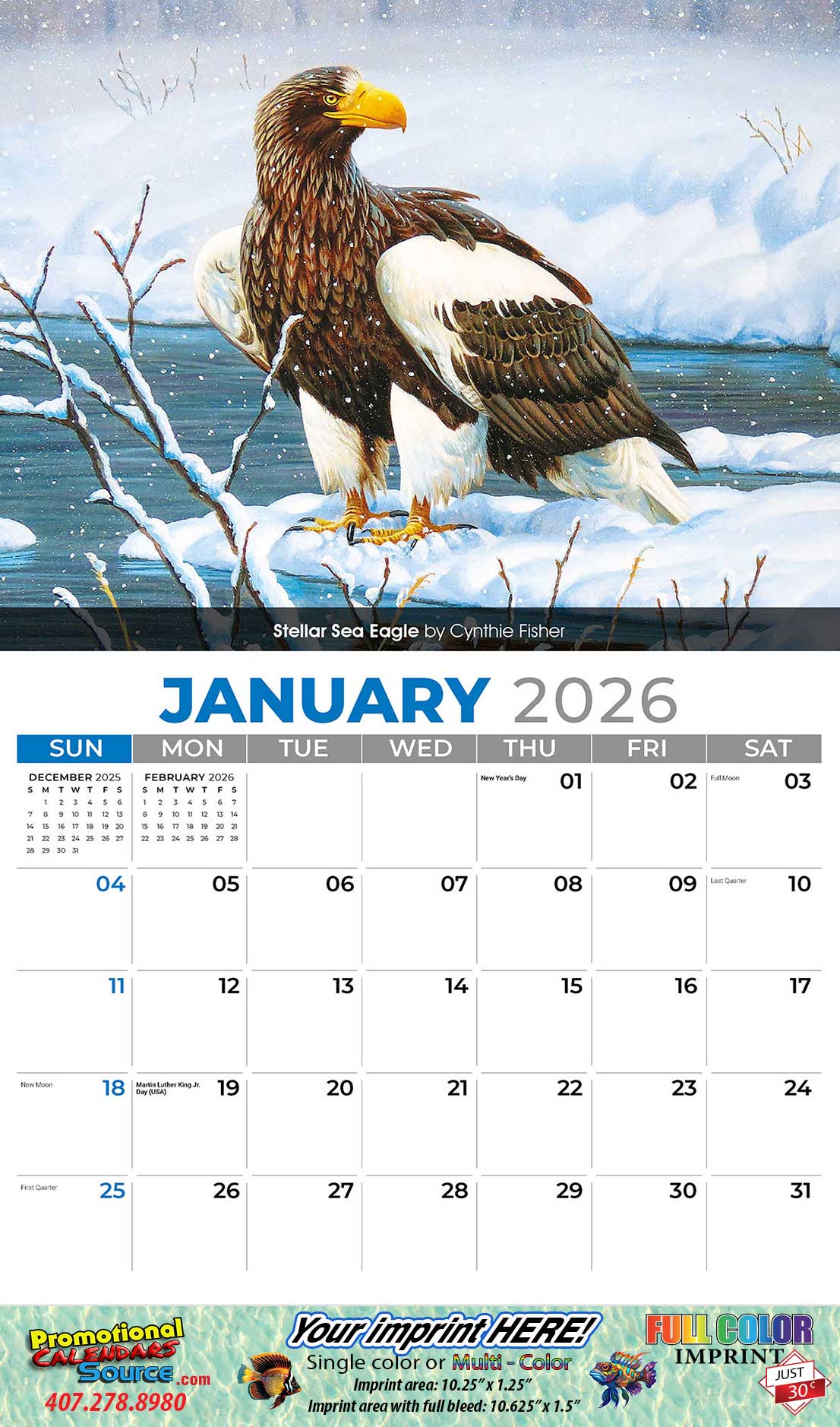 • Full-Bleed imprint option available for only $ 0.30 per calendar.