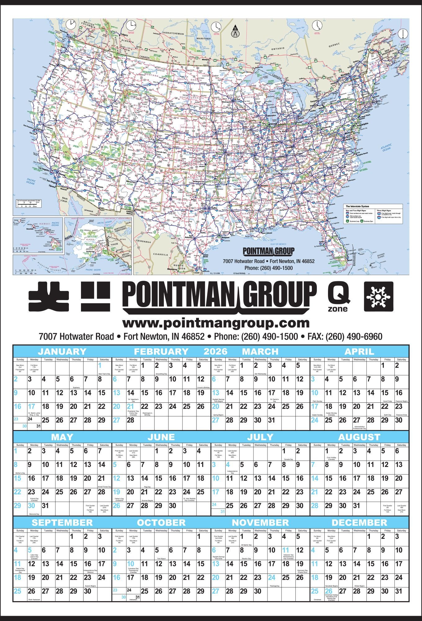 Mid Size Poster Style Calendar with U.S.A. Map and 12 Month In View layout.